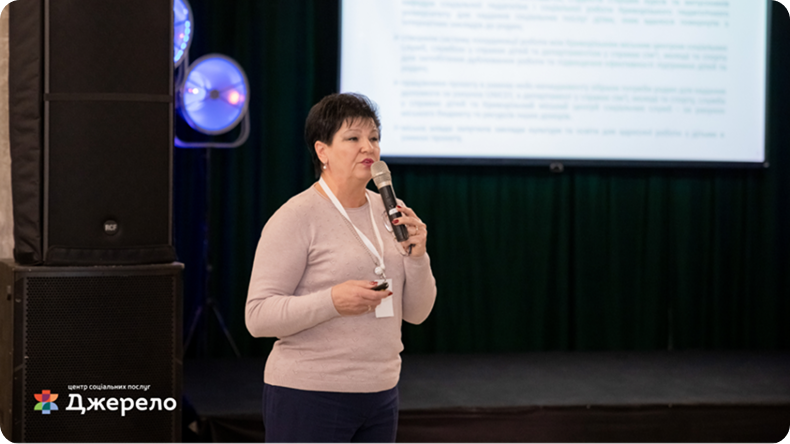 “Якщо соціальному працівнику не болить за дитину без родини, їй треба йти геть з цієї професії. Ви – світло для родин. Ви – не світло в кінці тунелю, а люди, які несуть ліхтарі”, – звернулась до соціальних працівників Дар’я Герасимчук.