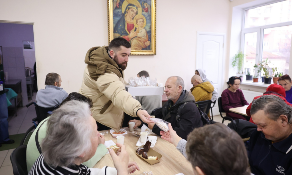 Близько 60 людей у потребі отримали гарячі страви, випічку і солодощі. Для бездомних цей сніданок став не просто їжею, а знаком турботи й тепла.