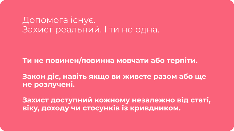 - Ти не винна. Ти не одна. І ти маєш право на повагу, турботу і безпечне життя.